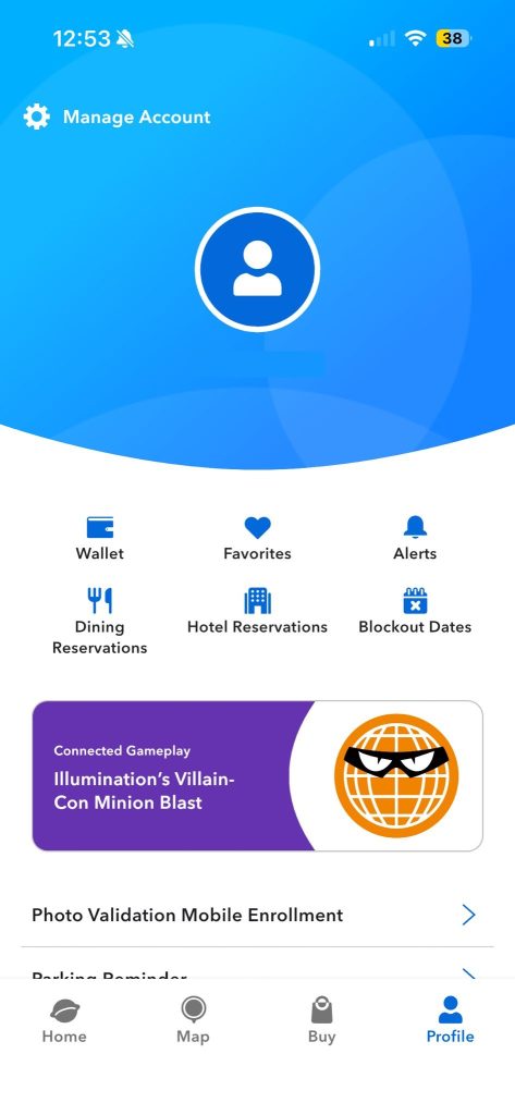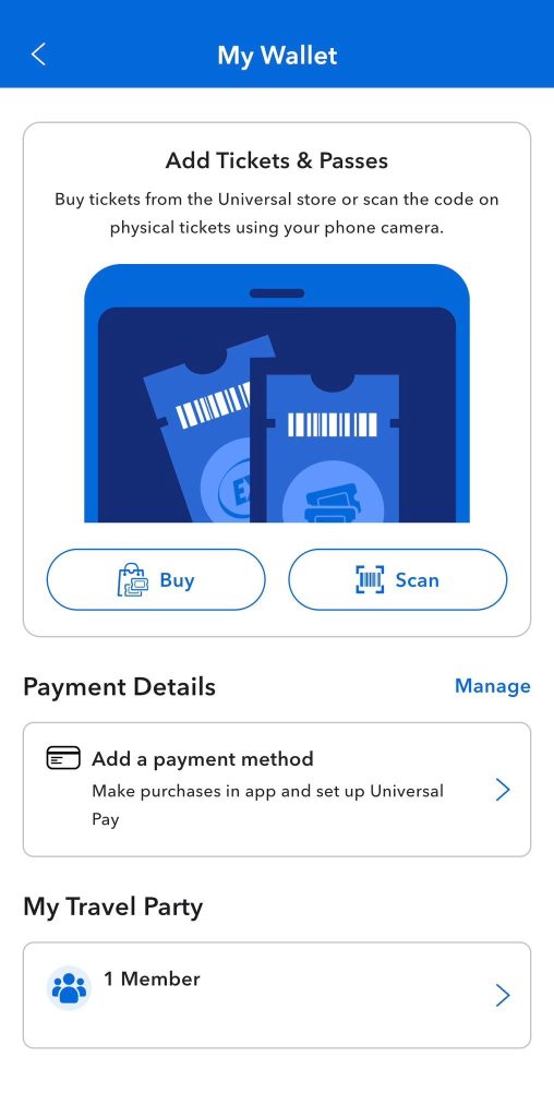 Make sure everyone in your party’s tickets are added to one device if you’re managing entry for a group it makes scanning into the parks much faster.